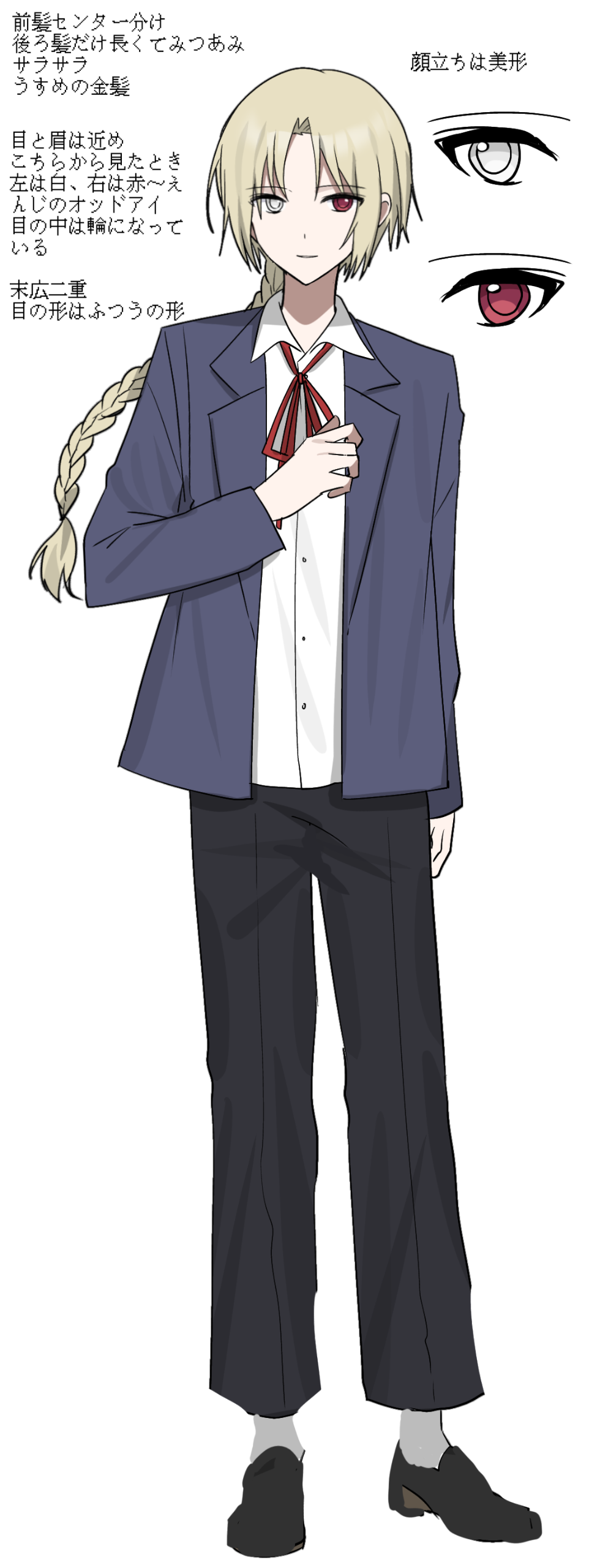 単なる好奇心で平行世界についての研究をしている。オッドアイの瞳を持った美形の男。大変頭が良く、人心掌握に長けている。運動神経も抜群。常に表情は穏やかだが警戒心が強く、頼りがいがあるように伺える。シンプルな服装を着ている。※(凛編)澪や一曰く主人公たちに害を及ぼす可能性がある危険人物である。